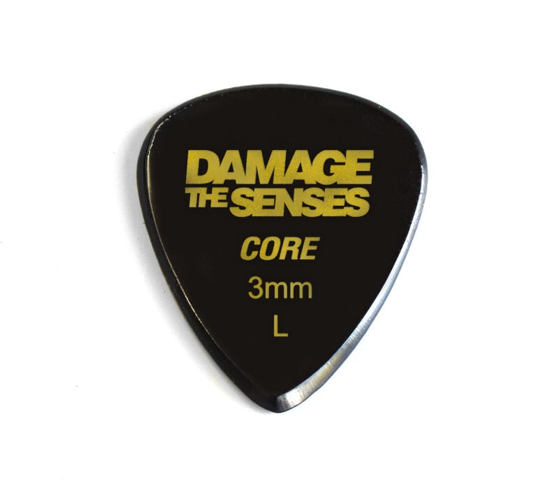 Damage The Senses Acrylic guitar picks are constructed from 3mm thick Acrylic featuring an etched & painted logo giving the pick extra grip. Acrylic is a hard, long lasting – slow wearing material.
