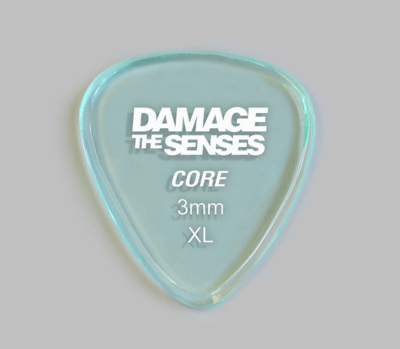 Damage The Senses Acrylic guitar picks are constructed from 3mm thick Acrylic featuring an etched & painted logo giving the pick extra grip. Acrylic is a hard, long lasting – slow wearing material.