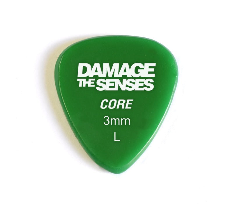 Damage The Senses Acrylic guitar picks are constructed from 3mm thick Acrylic featuring an etched & painted logo giving the pick extra grip. Acrylic is a hard, long lasting – slow wearing material.