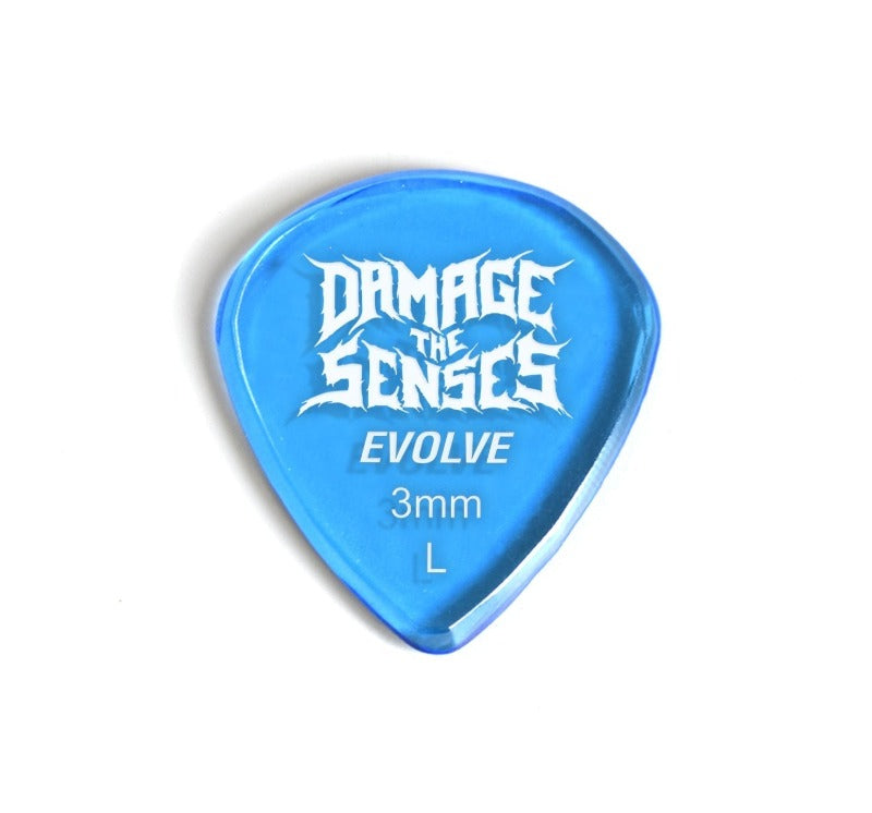 Damage The Senses Acrylic Guitar Picks are constructed from 3mm thick Acrylic featuring an etched & painted logo giving the pick extra grip. Acrylic is a hard, long lasting – slow wearing material.