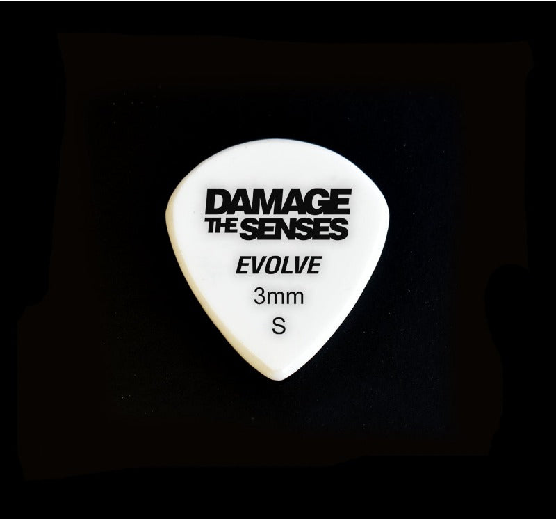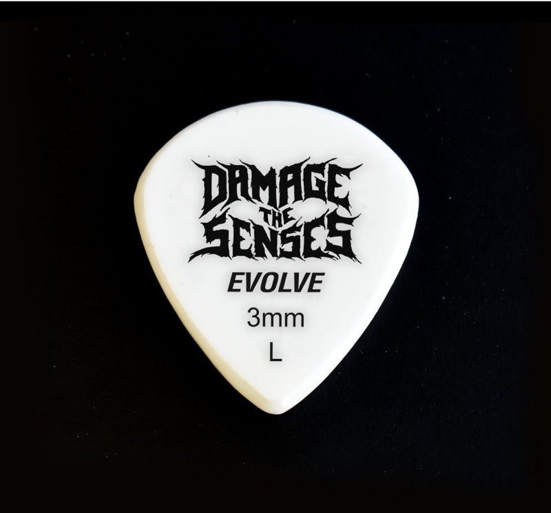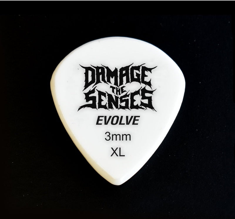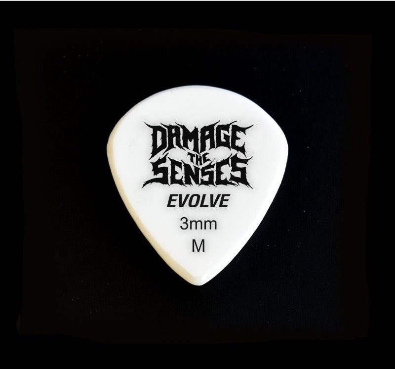 Damage The Senses Acrylic Guitar Picks are constructed from 3mm thick Acrylic featuring an etched & painted logo giving the pick extra grip. Acrylic is a hard, long lasting – slow wearing material.