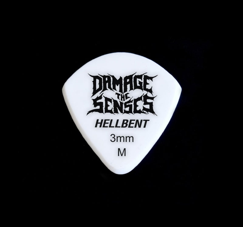 Damage The Senses Acrylic Guitar Picks are constructed from 3mm thick Acrylic featuring an etched & painted logo giving the pick extra grip. Acrylic is a hard, long lasting – slow wearing material.
