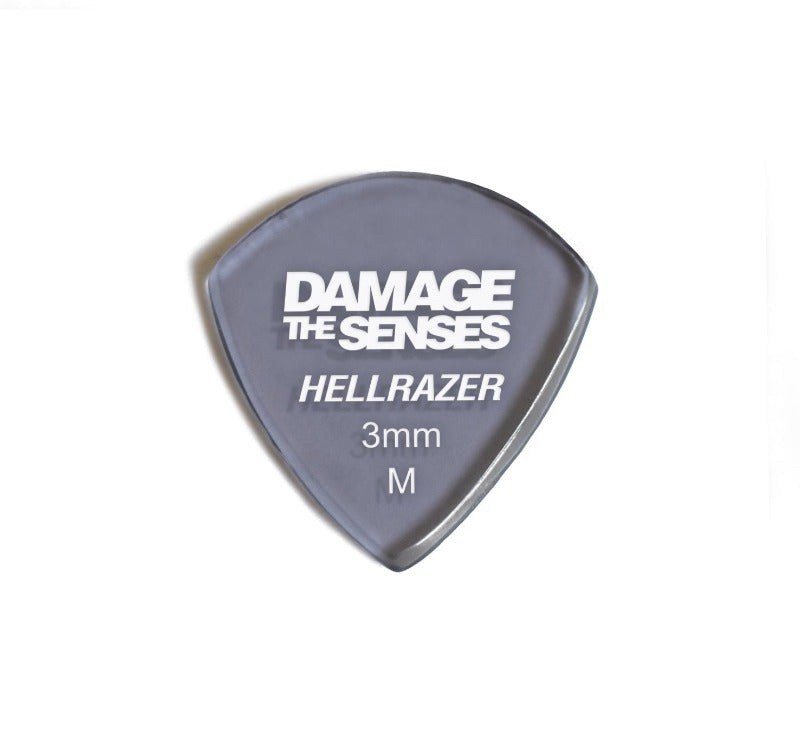 Damage The Senses Acrylic Guitar Picks are constructed from 3mm thick Acrylic featuring an etched & painted logo giving the pick extra grip. Acrylic is a hard, long lasting – slow wearing material.