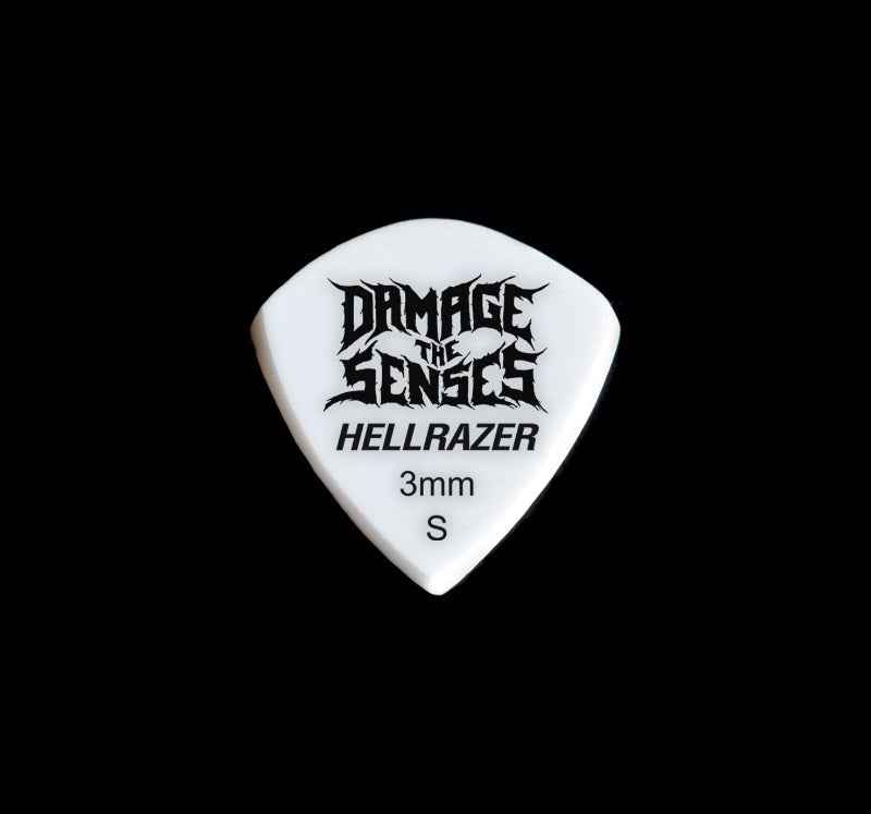 Damage The Senses Acrylic Guitar Picks are constructed from 3mm thick Acrylic featuring an etched & painted logo giving the pick extra grip. Acrylic is a hard, long lasting – slow wearing material.
