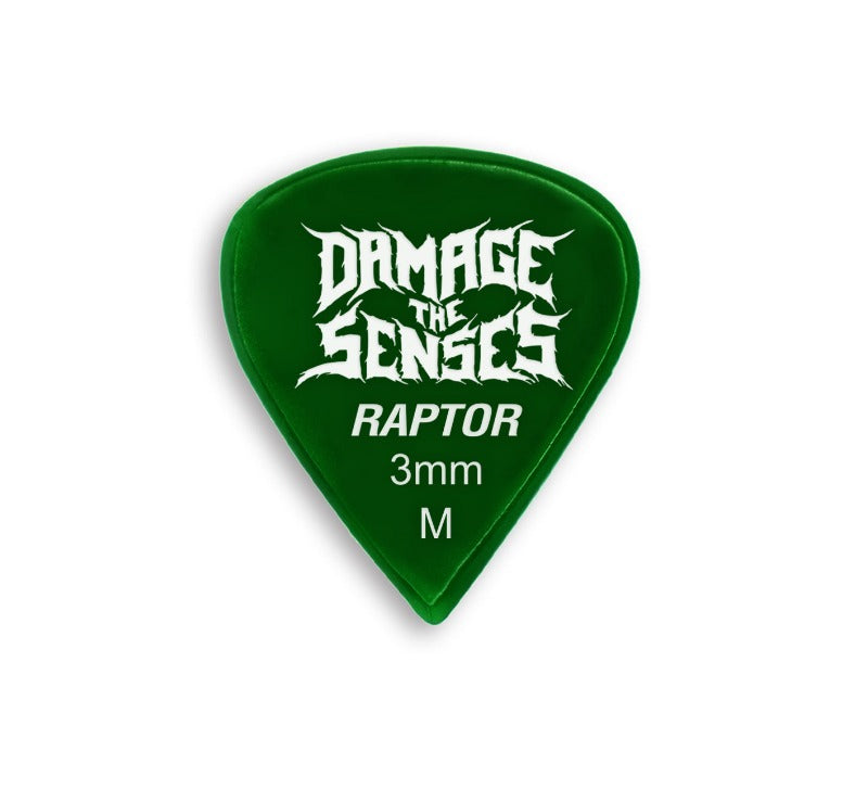 Damage The Senses picks are constructed from 3mm thick Acrylic featuring an etched & painted logo giving the pick extra grip. Acrylic is a hard, long lasting – slow wearing material.