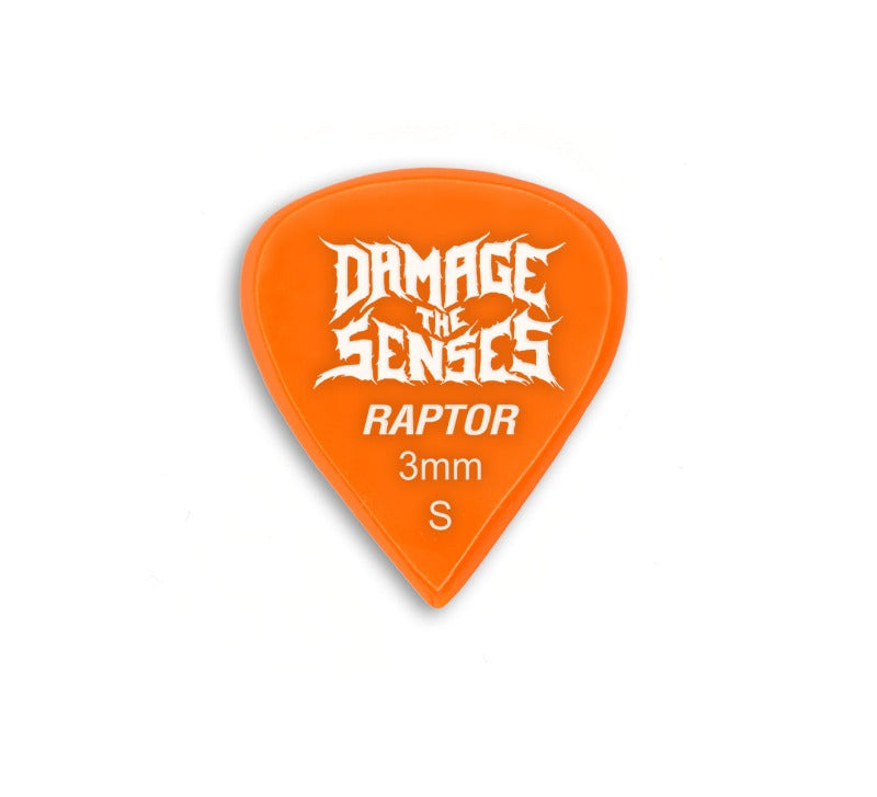 Damage The Senses picks are constructed from 3mm thick Acrylic featuring an etched & painted logo giving the pick extra grip. Acrylic is a hard, long lasting – slow wearing material.