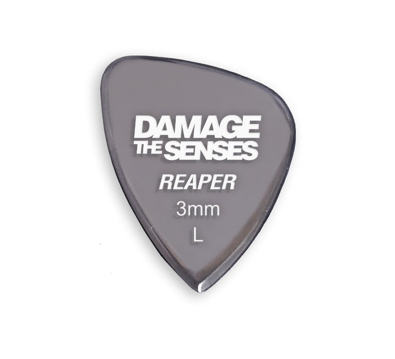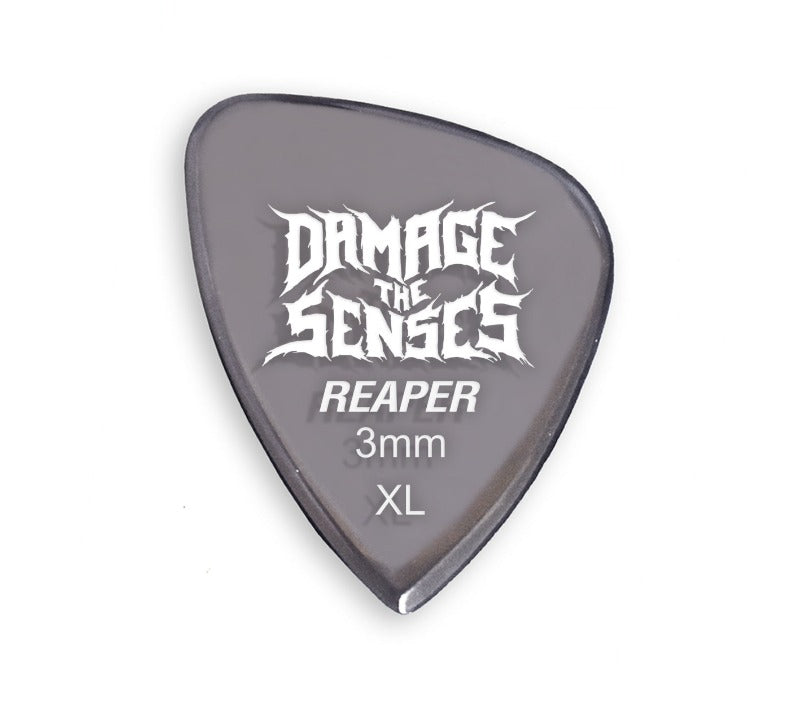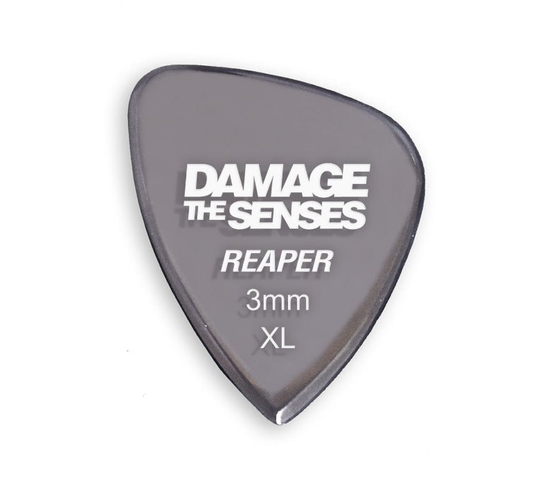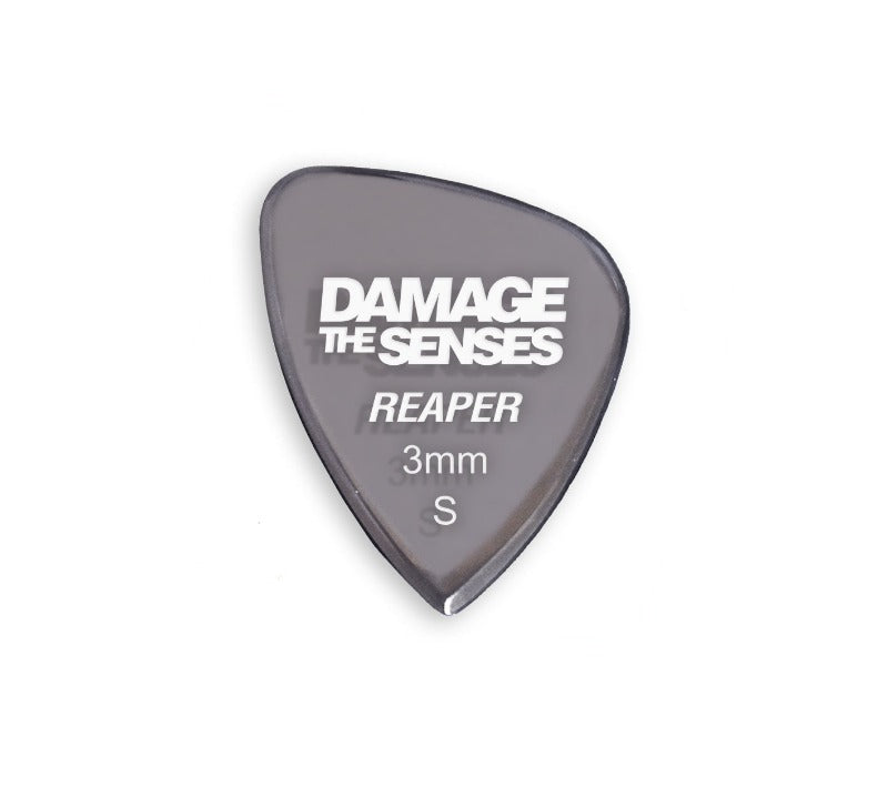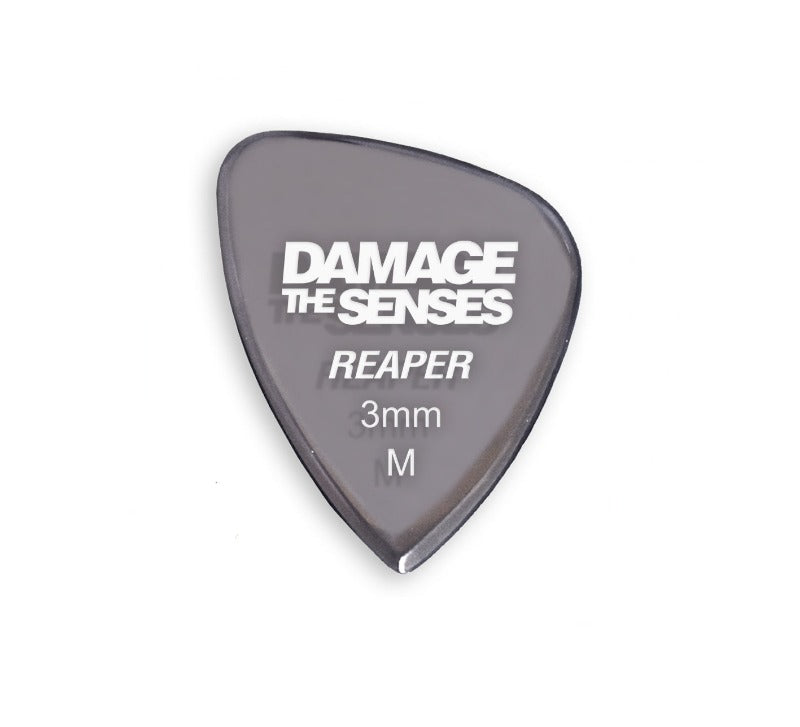 Damage The Senses picks are constructed from 3mm thick Acrylic featuring an etched & painted logo giving the pick extra grip. Acrylic is a hard, long lasting – slow wearing material.