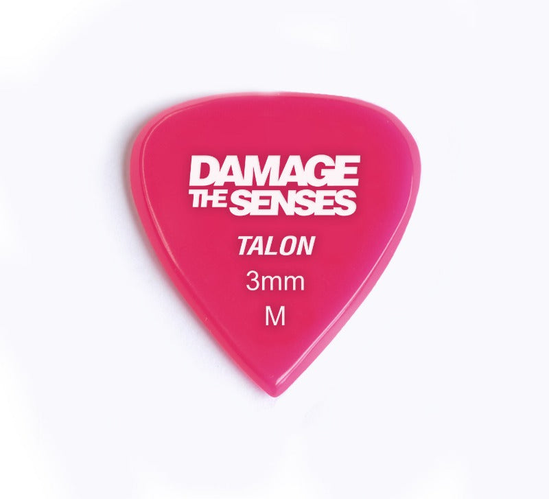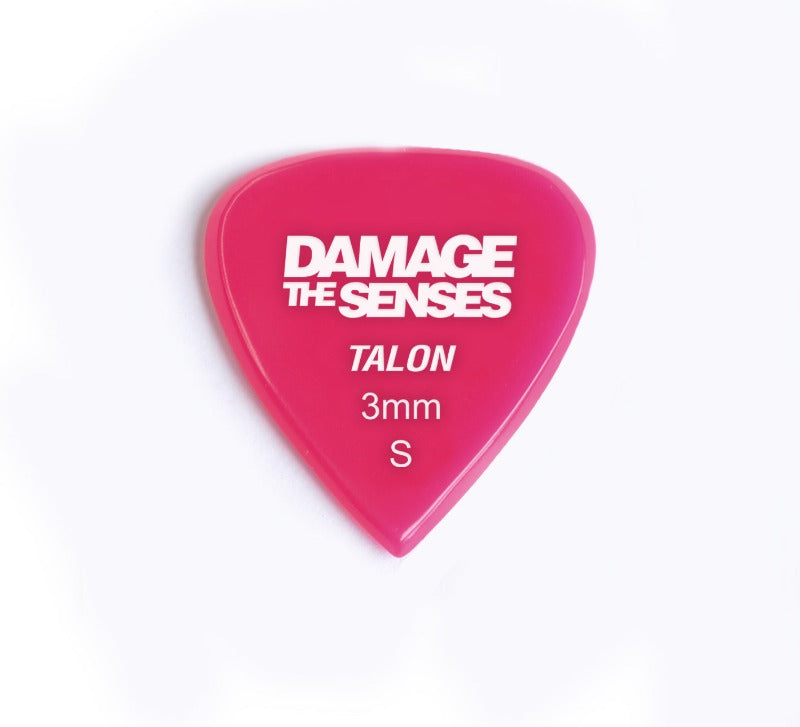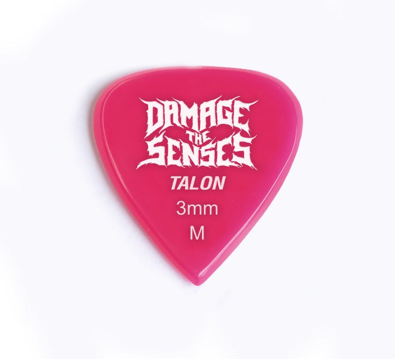 Damage The Senses picks are constructed from 3mm thick Acrylic featuring an etched & painted logo giving the pick extra grip. Acrylic is a hard, long lasting – slow wearing material.