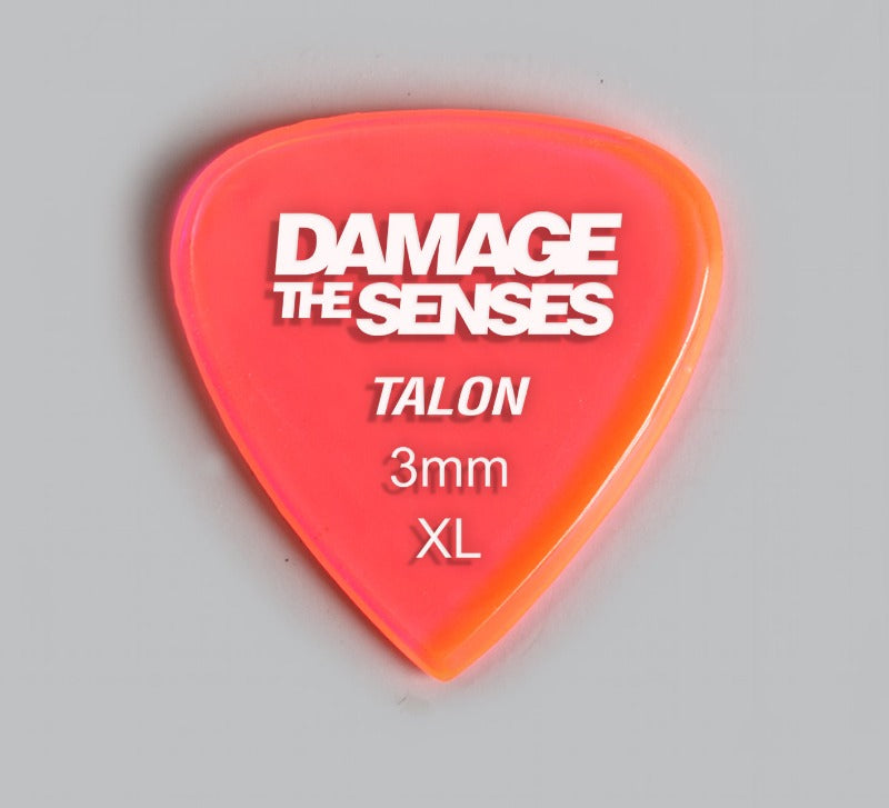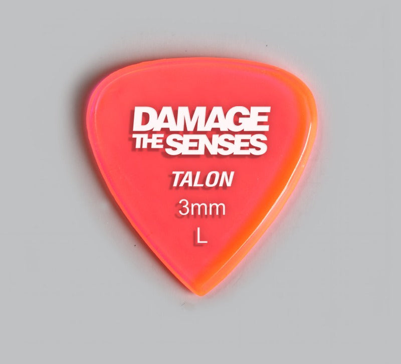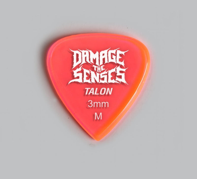 Damage The Senses picks are constructed from 3mm thick Acrylic featuring an etched & painted logo giving the pick extra grip. Acrylic is a hard, long lasting – slow wearing material.
