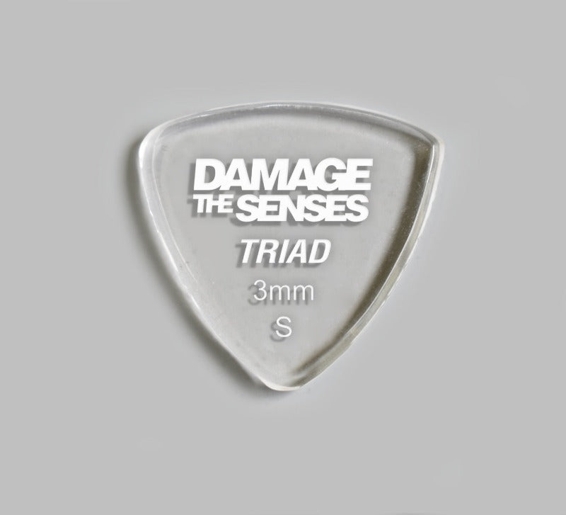 Damage The Senses picks are constructed from 3mm thick Acrylic featuring an etched & painted logo giving the pick extra grip. Acrylic is a hard, long lasting – slow wearing material.