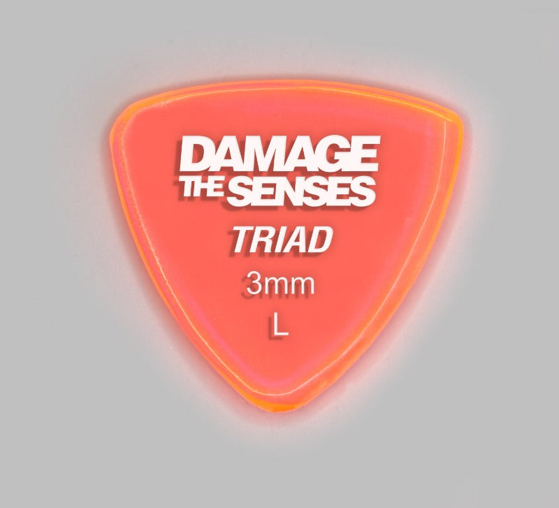 Damage The Senses picks are constructed from 3mm thick Acrylic featuring an etched & painted logo giving the pick extra grip. Acrylic is a hard, long lasting – slow wearing material.