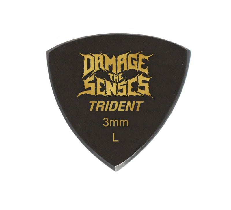 Damage The Senses picks are constructed from 3mm thick Acrylic featuring an etched & painted logo giving the pick extra grip. Acrylic is a hard, long lasting – slow wearing material.