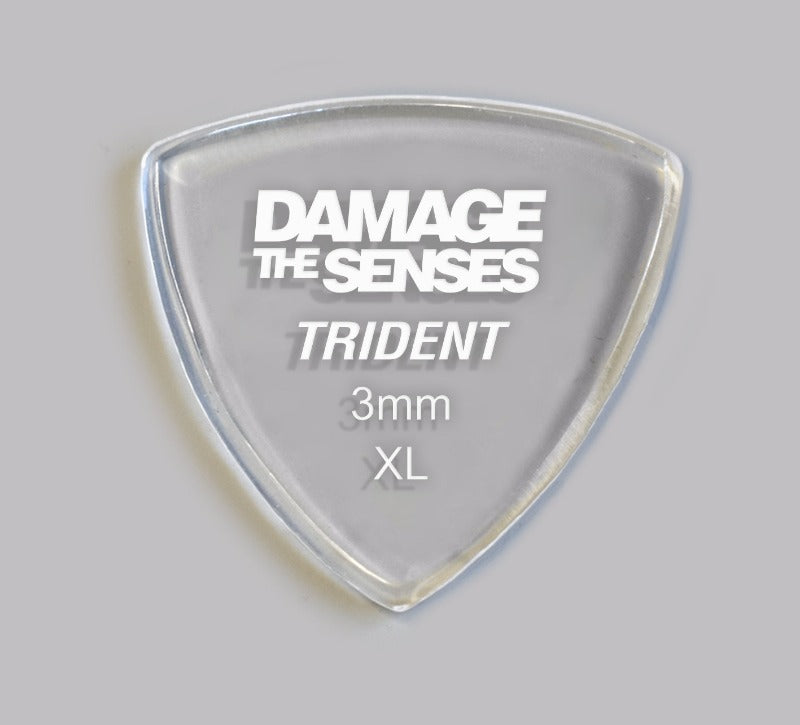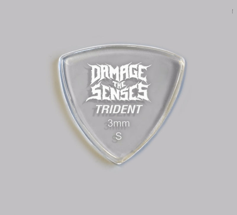 Damage The Senses picks are constructed from 3mm thick Acrylic featuring an etched & painted logo giving the pick extra grip. Acrylic is a hard, long lasting – slow wearing material.