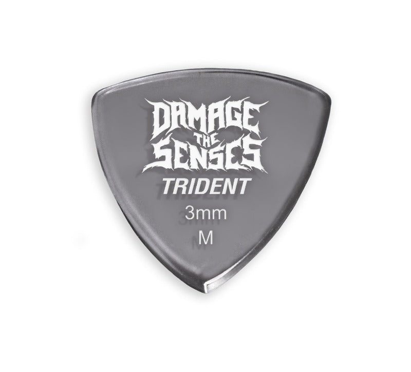 Damage The Senses picks are constructed from 3mm thick Acrylic featuring an etched & painted logo giving the pick extra grip. Acrylic is a hard, long lasting – slow wearing material.